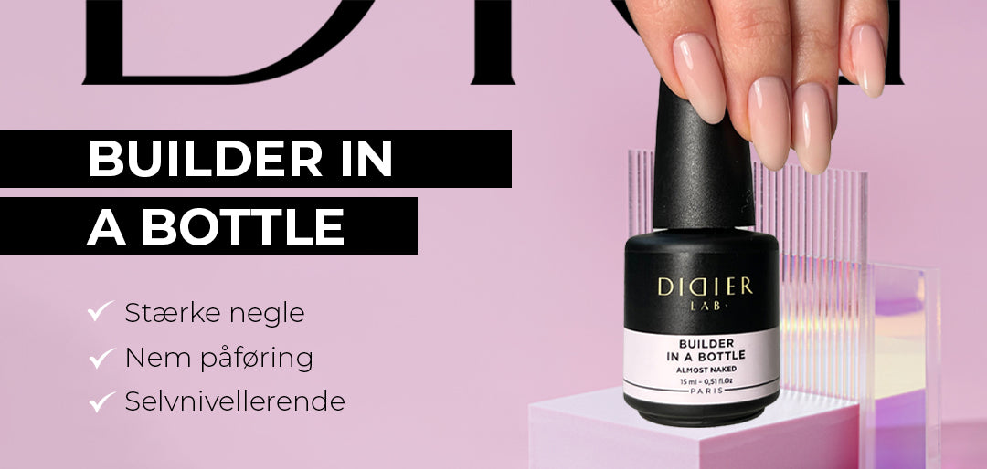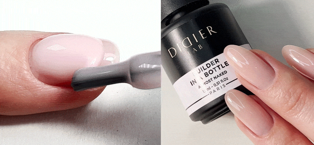 4. Hvis du har valgt Builder Gel BBIO med farve, påfør først et lag af Didier Lab Premium Gel Base som et ‘rubbing layer’. Lad produktet hærde i 60 sekunder under LED-lampe eller 90 sekunder under UV-lampe (lampe bølgelængde 395-405nm).