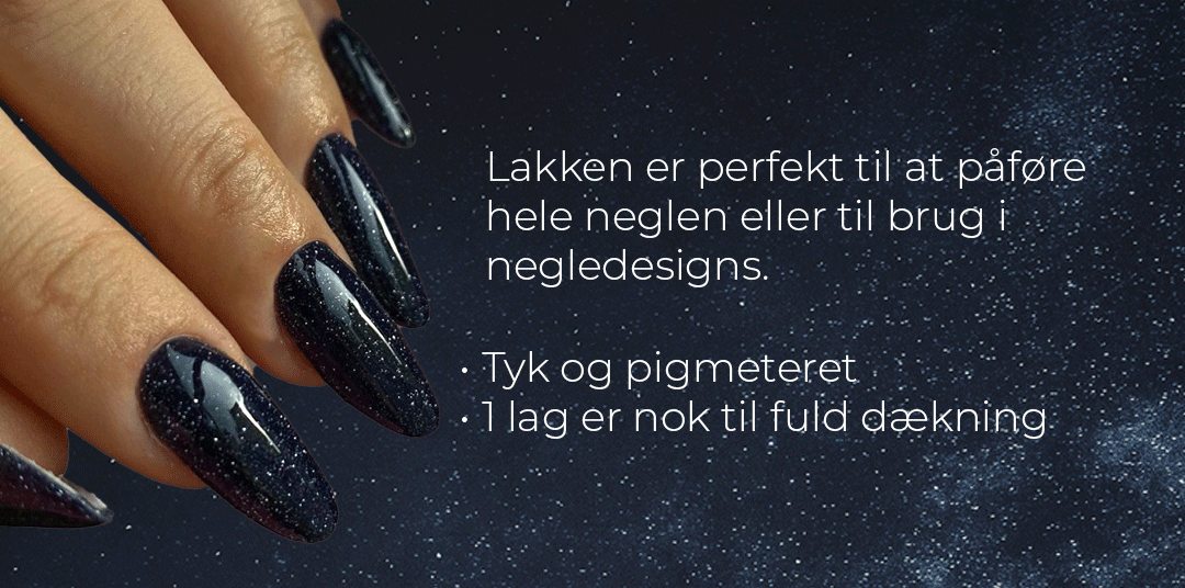 Semi-permanent og lysreflekterende lak. Tyk og stærkt pigmenteret konsistent, hvis glitrende platinum skær er perfekt for at dække hele neglen eller som element i nail art design.